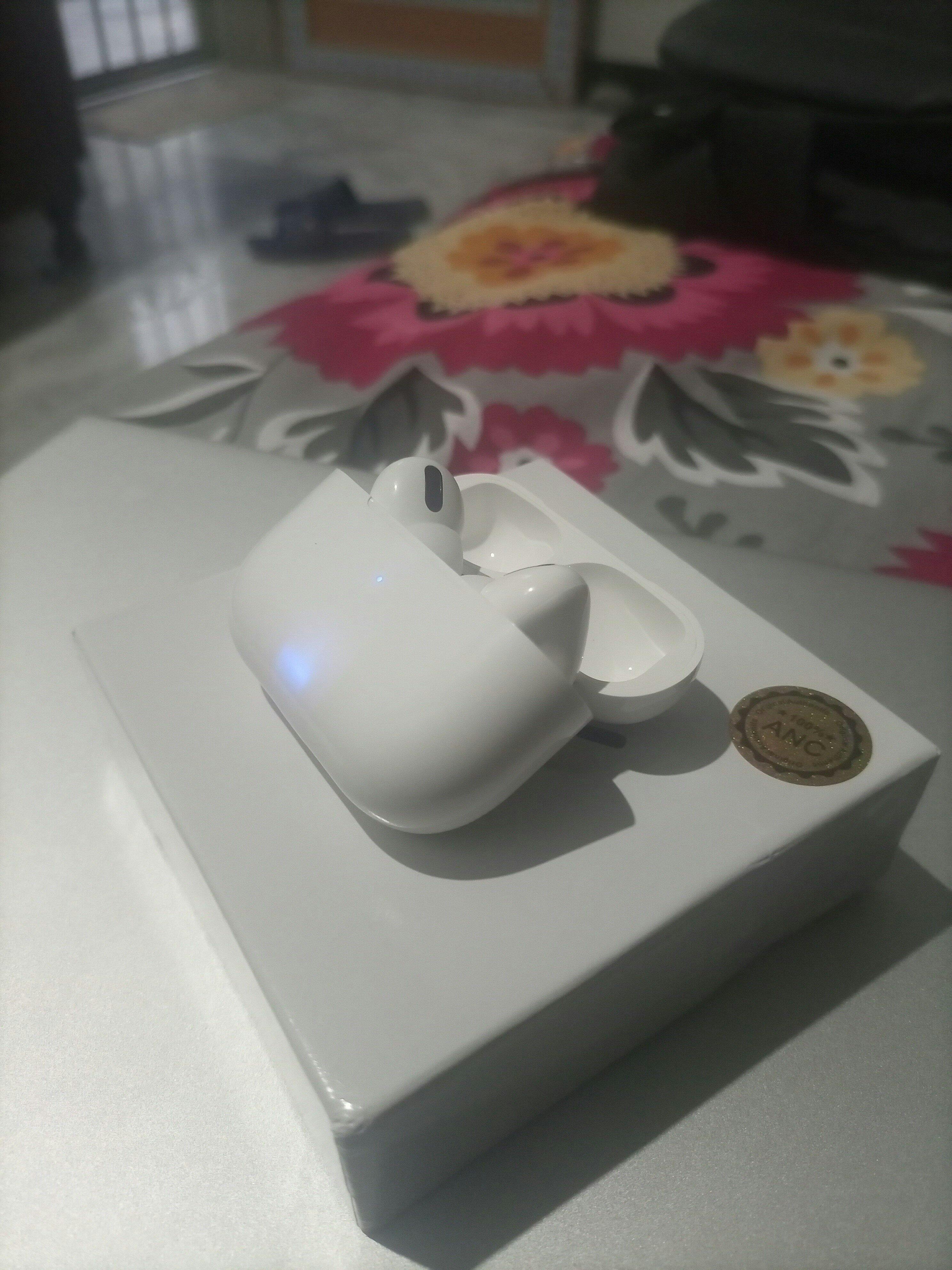 This AirPods Pro 2 Master Copy is a great budget-friendly alternative, offering similar looks and basic functionalities like Bluetooth connectivity, decent sound quality, and touch controls. However, it lacks premium Apple features like real ANC, Adaptive EQ, Transparency Mode, and Find My support.